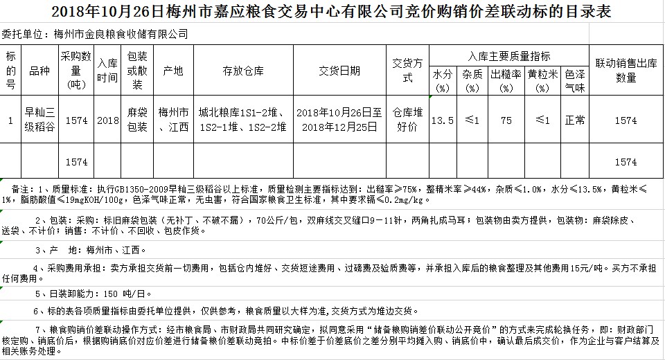 2018年10月26日梅州市金良糧食收儲有限公司稻谷購銷價差聯(lián)動標(biāo)的交易會