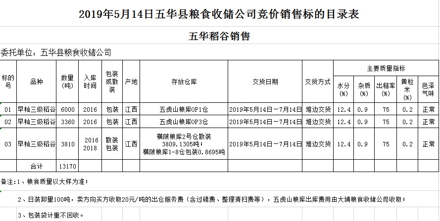 2019年5月14日五華縣糧食收儲公司稻谷銷售
