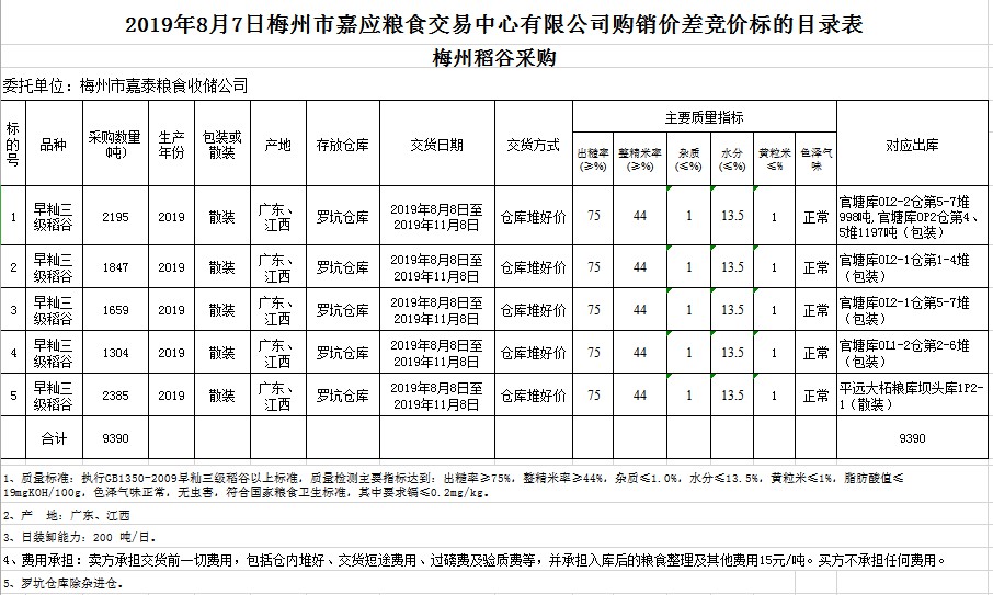 2019年8月7日梅州市嘉泰糧食收儲公司稻谷購銷價差聯(lián)動標(biāo)的交易會