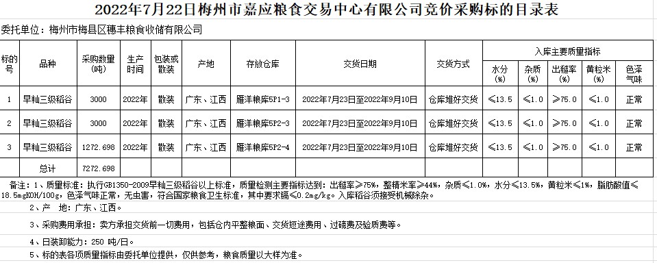 2022年7月22日梅州市梅縣區(qū)穗豐糧食收儲有限公司稻谷采購