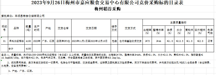 2023年9月26日豐順縣糧食收儲(chǔ)有限公司稻谷采購(gòu)