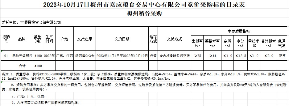 2023年10月17日豐順縣糧食收儲有限公司稻谷采購