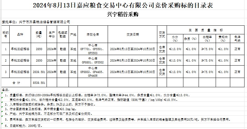 2024年8月13日興寧市齊昌糧油儲備管理有限公司稻谷采購