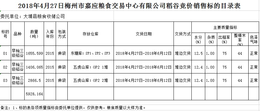 交易時間和地點:20184月27日(星期五)上午10。廣東省梅州市彬芳大道南161號梅州市糧食交易中心3樓。